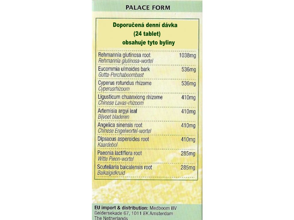 3x denně polknout 8 pilulek a zapít vodou, 15 minut po jídle