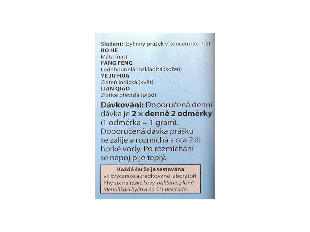 - Vylučuje horký vítr FENG RE z povrchu těla BIAO